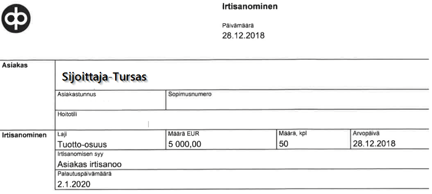 Ostaessani ensimmäistä sijoitusasuntoani minulle jäi hiukan ylimääräistä käteistä. Helsingin OP:lla oli tuolloin tarjous asiakasomistajatilistä, josta sai 3,25 % takuukoron sillä ehdolla, että merkitsi samalla summalla tuotto-osuuksia, kun Helsingin OP Pankki muuttui samantyyppiseksi osuuskunnaksi kuin muutkin OP-pankit. Merkitsin tuolloin osuuksia 5000 eurolla. Monessa mielessä tuotto-osuudet ovat olleet ihan hyvä sijoitus. Viime kesänä sain ennustetun 3,25 %… Jatka lukemista OP Tuotto-osuus: irtisanominen