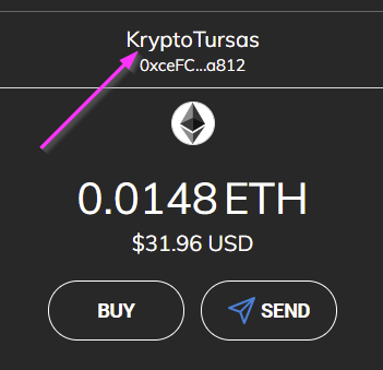 Ethereum-pohjainen lompakko vaatii aina toimiakseen hiukan Ethereitä eli $ETH:ta. Tässä on aika vaikea välttää siirtomaksuja, joten lähetä ihan suosiolla ETH:ta omasta lompakosta tai pörssistä (Coinmotion, Binance, jne) sopiva summa. Suosittelen lähettämään ainakin 0.1 ETH:ta (nyt n. 180 €), muuten siirtomaksut nappaavat liian ison osan potista. Metamaskissa oman lompakon osoitteen saa kopioitua leikepöydälle klikkaamalla lompakon nimeä / osoitetta (0x-alkuinen merkkijono).