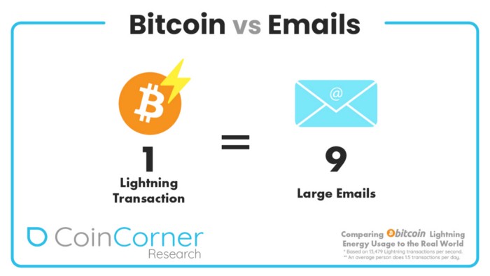 Bitcoin-verkkoa kritisoidaan usein sen suuresta energiankulutuksesta. Tämä on toki fakta, mutta on syytä skaalata oikeisiin mittasuhteisiin. Salamamaksut keventävät lohkoketjun kuormitusta ja niiden hiilijalanjälki onkin merkittävästi pienempi kuin tavallisen bitcoin-transaktion. Erään tutkimuksen mukaan yhden ⚡️-maksun co2-kustannus vastaisi noin yhdeksän isohkon sähköpostin lähetystä. Nämäkin luvut elävät koko ajan, mutta bitcoin-verkko kehittyy koko ajan ja niin kustannukset kuin energiankulutuskin ovat laskevassa trendissä. Tervetuloa siis mukaan! 🤩