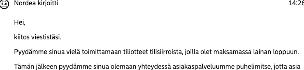 Minulla oli 15 000 euroa Bank Norwegianissa, Nordnetistä nostin osakemyynneistä ja osingoista saatuja varoja 6 500 euroa ja loput varat olivat käyttötilillä. Vastatilijärjestelyiden takia kierrätin rahat OP:n tilini kautta, joten jouduin toimittamaan paitsi OP:n tiliotteen, niin myös tapahtumalistaukset sekä Nordnetistä että Bank Norwegianilta. Mutta sitten kun sain nämä lähetettyä Nordeaan ja soitin asiakaspalveluun, niin homma hoitui muutamassa minuutissa. Vaikka tämä olikin rahan siirtämistä taskusta toiseen, niin jotenkin sitä vaan olo keveni miehellä heti kun velkasaldo hupeni 😅