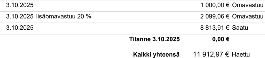 Kiitokset kommentista! Valitettavan yleisiä nämä kuitenkin tuntuvat olevan. Meidän tapauksessa näköjään vakuutusyhtiö on hoitanut jo oman osuutensa mallikkaasti ajoissa.